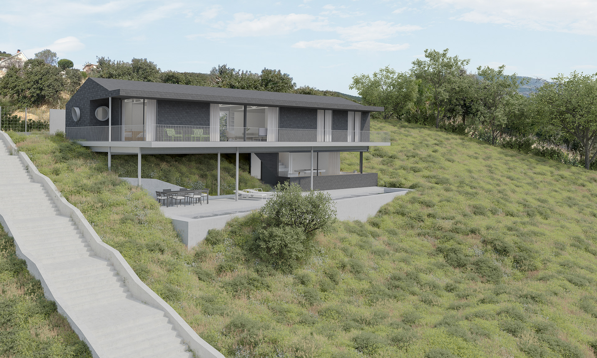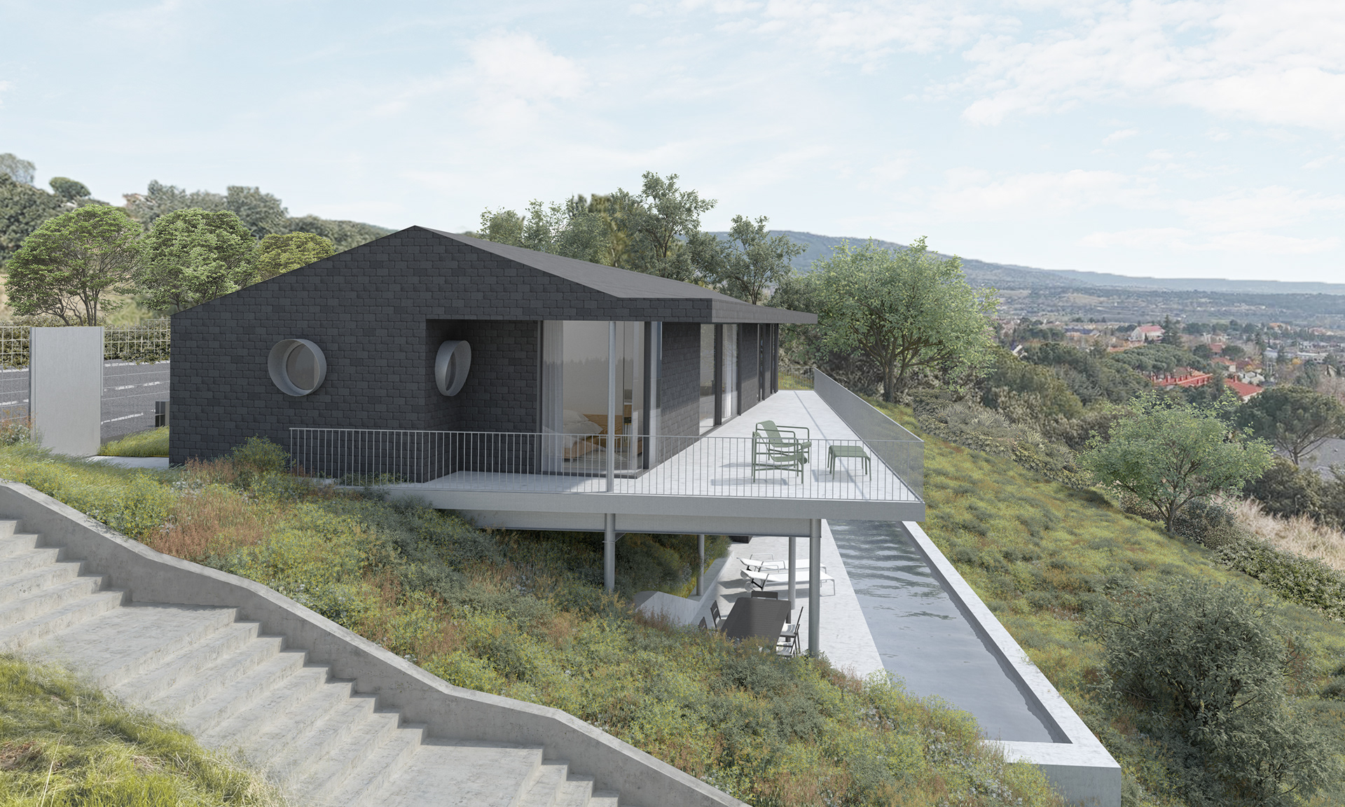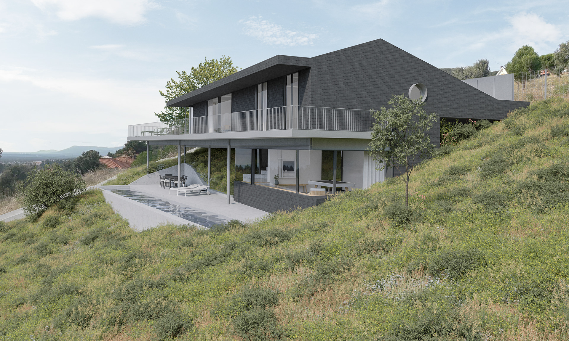 Obra: Vivienda unifamiliar aislada en Collado Mediano Ubicación: Collado Mediano, Madrid Autores: Gerardo Macarrón y Silvia Méndez-Vigo Superficie construida: 175 m2 Año: 2025 Fotos: